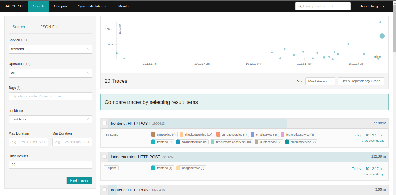 | Jaeger UI | Trace View |
